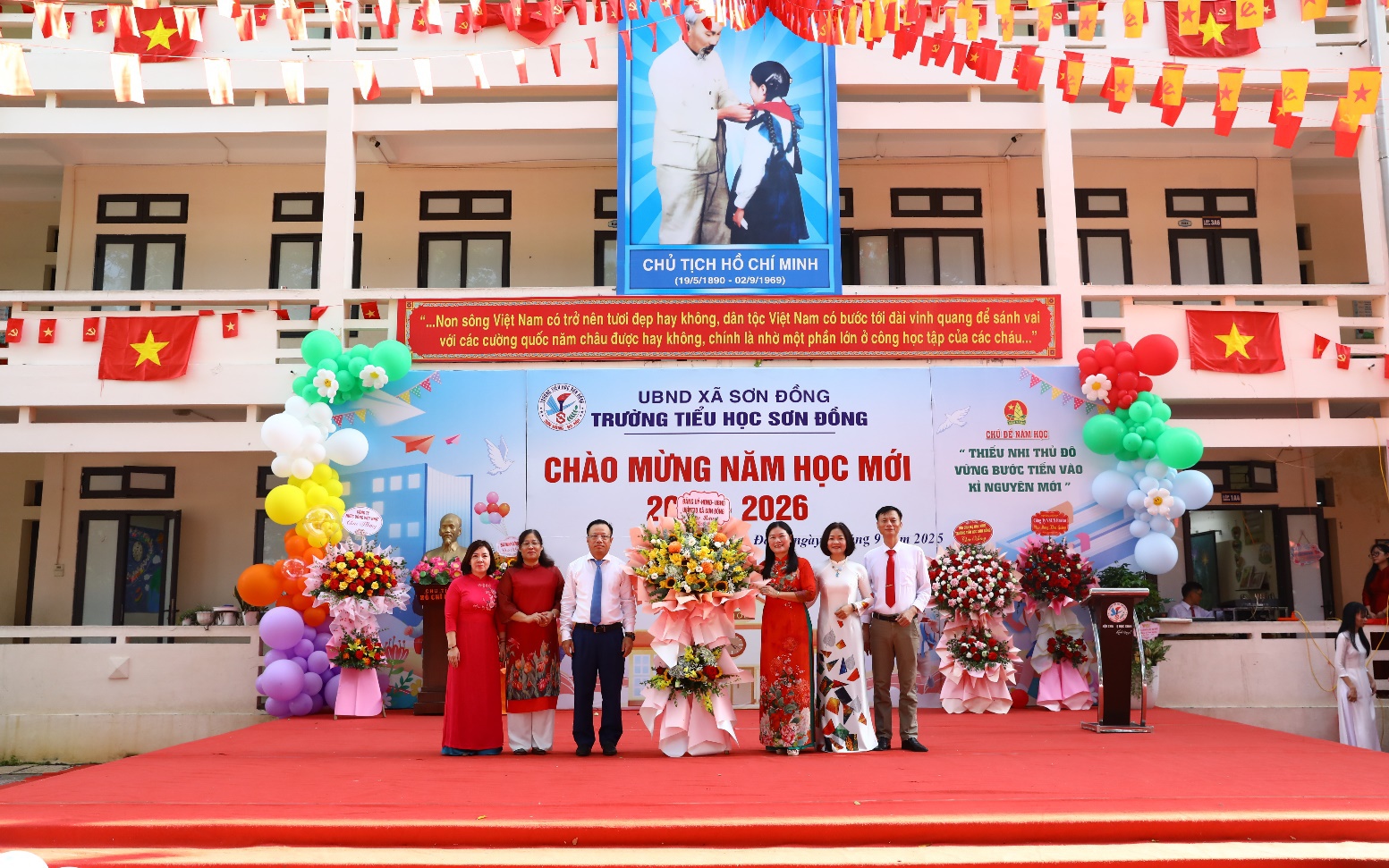 Trong không khí của những ngày thu lịch sử, cả nước hân hoan chào mừng kỷ niệm 80 năm Cách mạng Tháng Tám thành công và Quốc khánh 2/9, 80 năm thành lập Bộ Quốc gia Giáo dục (Nay là Bộ GD&ĐT); hòa chung với khí thế tưng bừng, náo nhiệt của tuổi trẻ học đường, cả nước chào đón năm học mới - ngày "Toàn dân đưa trẻ đến trường", thầy và trò trường Tiểu học Sơn Đồng tề tựu đông đủ về đây với bao niềm vui, náo nức đón chào năm học mới.